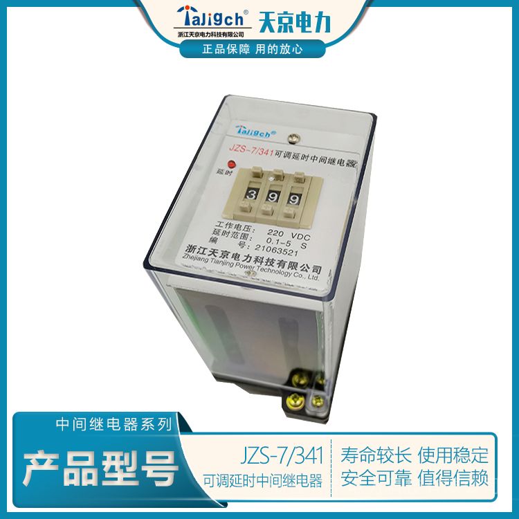 本系列继电器面板上有二个整定时间值,T1通电动作延时为1~30S,T2晃电延时为0.1S~9.9S可分别设定大容量B型触点为驱动接触器用,信号触点为反应接触器通断状态用。
