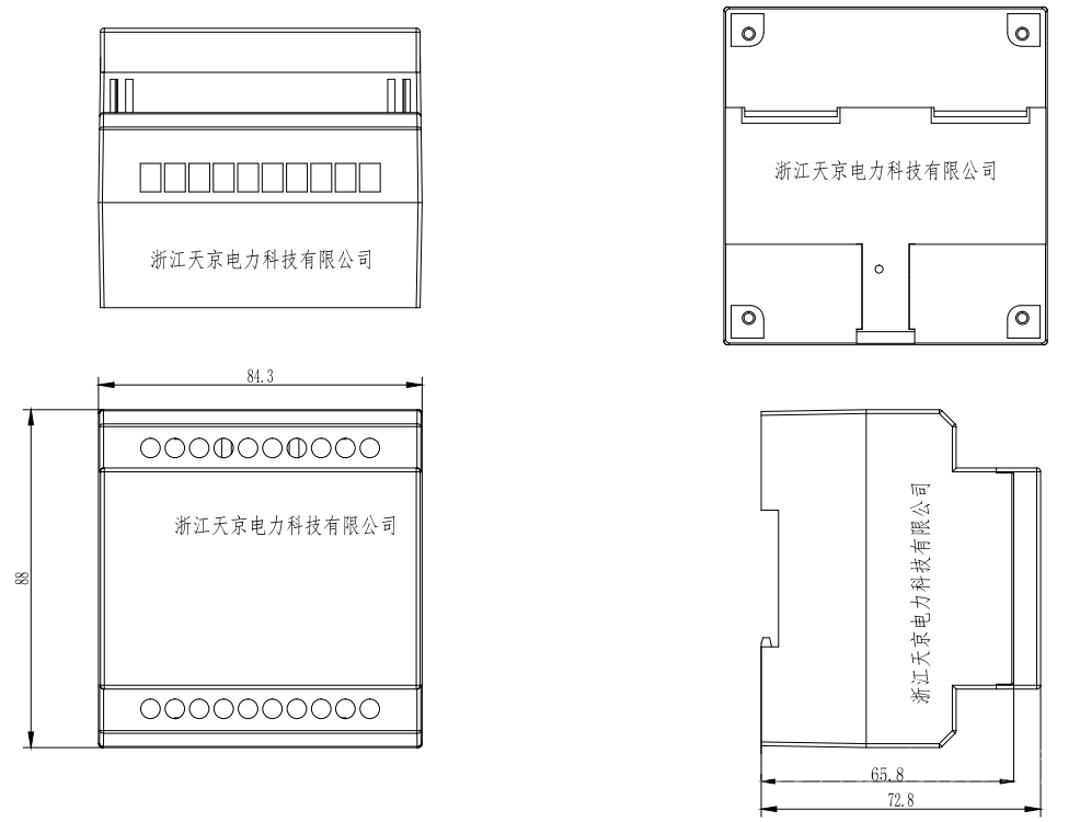 继电器采用 TG导轨型壳体,TQ板前型壳体. TJ嵌入型壳体.其外形尺寸、背后端子及安装开孔图附。背后端子接线。继电器的动作原理是利用三相输入电压信号的矢量合成是否为零来判断电压互感器二次侧电压是否平衡,且利用三相零序电压来判断造成电压互感器二次侧产生三相不平衡电压的原因。