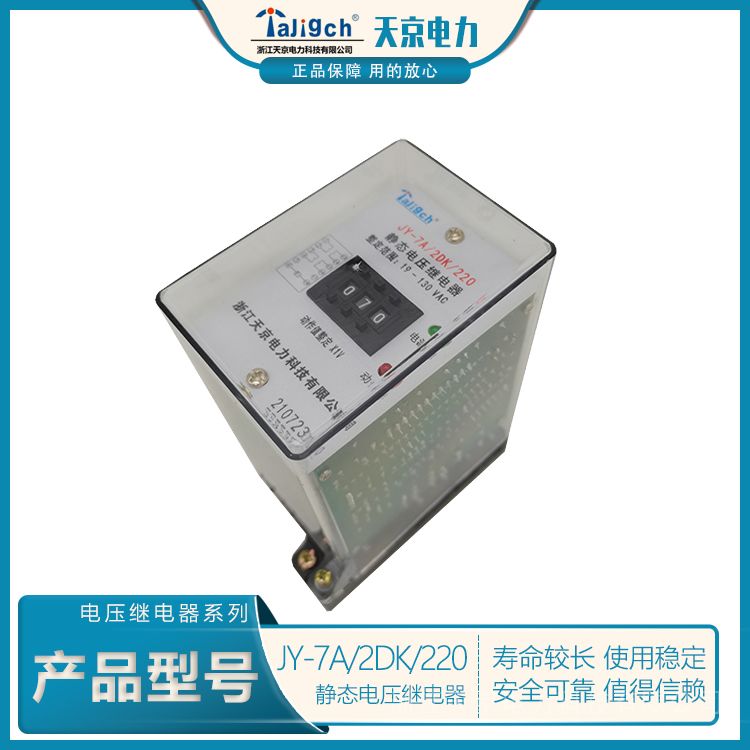 JY-7系列DK型不带辅助电源电压继电器用于发电机、变压器、输变电线路的继电保护装置中,作为过电压保护或低电压闭锁启动元件。